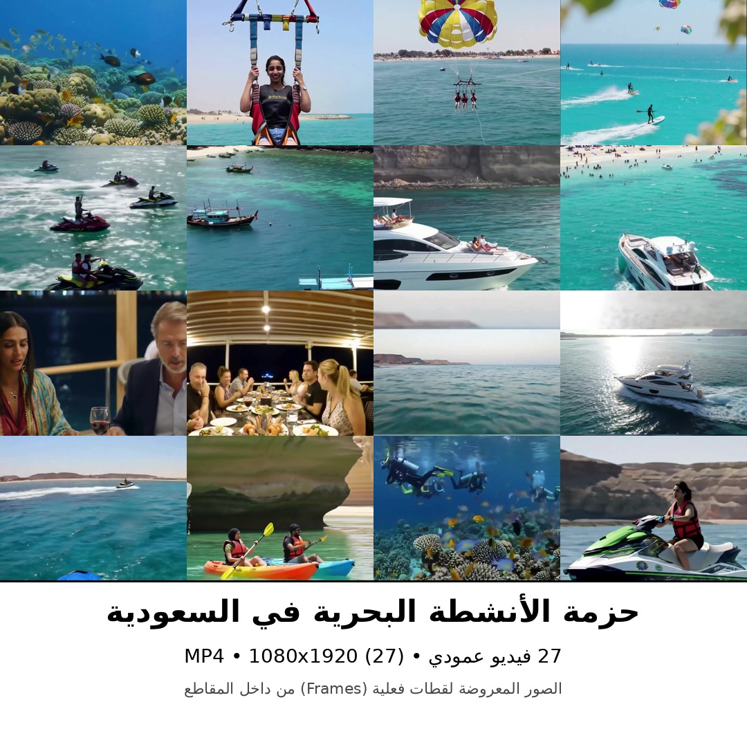 حزمة الأنشطة البحرية في السعودية — 25 فيديو ستوك عمودي بجودة HD لمحتوى الحركة والإعلانات، مناسبة لـ Reels وTikTok وShorts، مع metadata عربي/إنجليزي وترخيص واضح و تحميل فوري بعد الشراء.